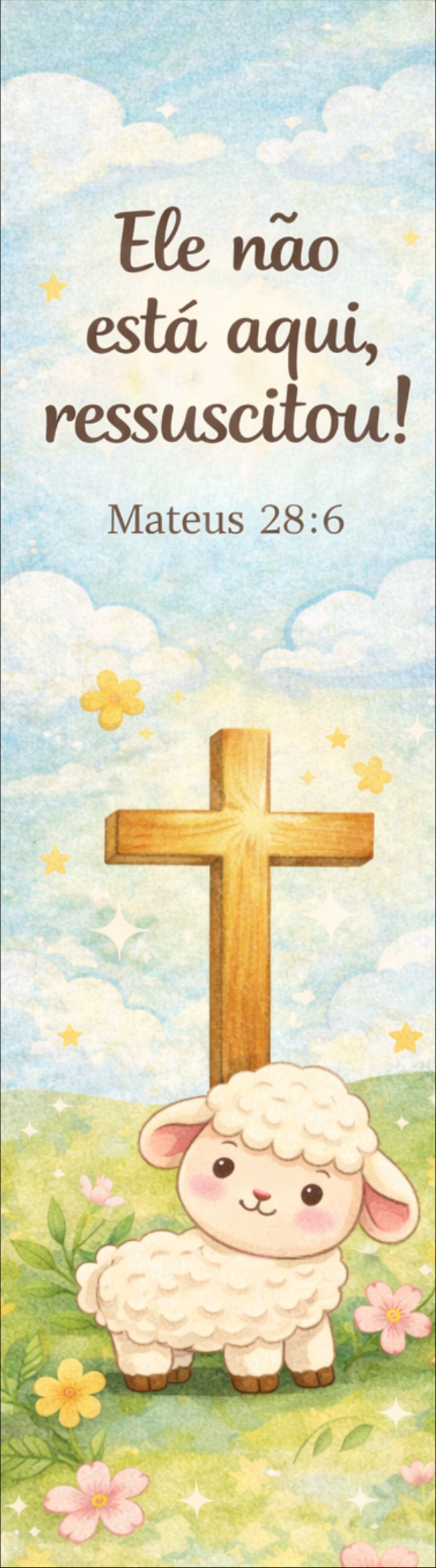 Esses marcadores são perfeitos para distribuir em igrejas, escolas, catequese ou encontros de Páscoa.
